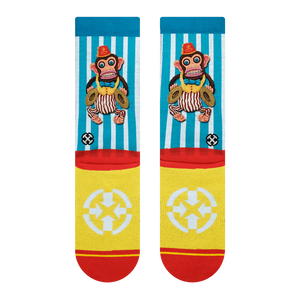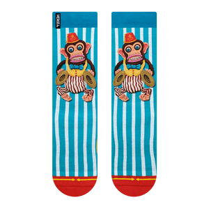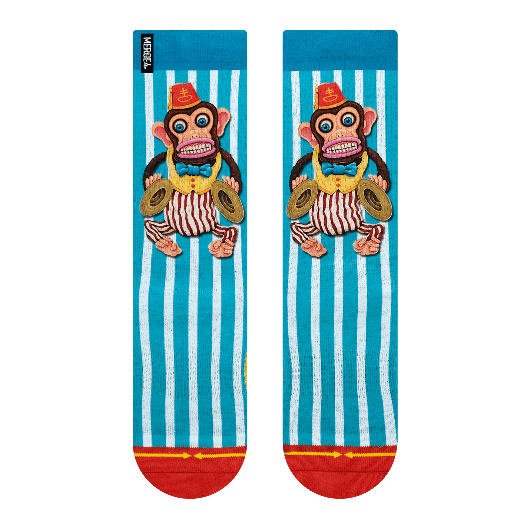 Merge4's Banging Monkey Crew Socks, designed by artist Dirk Hays, feature gradual compression technology that starts at the ankle and extends up the leg. This innovative design ensures optimal comfort and effectiveness, promoting healthy circulation and blood flow. With a mild compression level of 15-20 mmHg, these socks are ideal for everyday use in any situation, whether it's relaxing at home, hitting the gym, or embarking on an adventure.