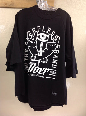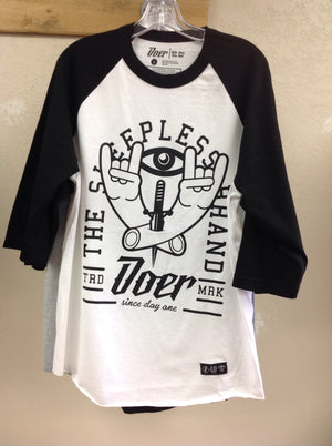 Introducing the Doer "THE SLEEPLESS BRAND" Raglan Baseball Tee, designed to provide ultimate comfort and style. Made with 3/4 sleeves, this t-shirt is perfect for those sleepless nights where you want to look and feel your best. Trust in our brand's expertise and commitment to delivering quality products.